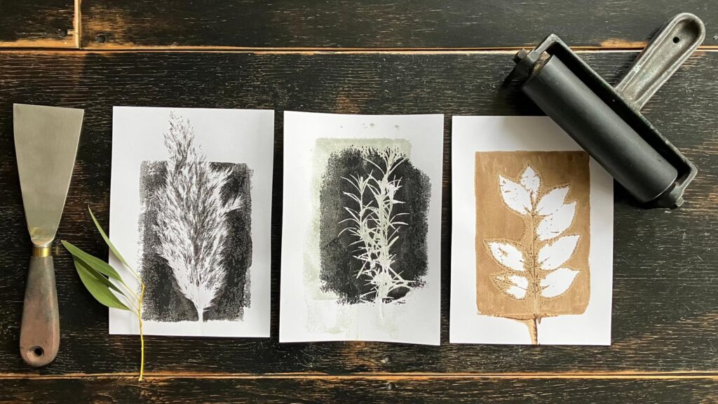 Aan het eind van de workshop ga je naar huis met een mooie verzameling eigen botanische monoprints.